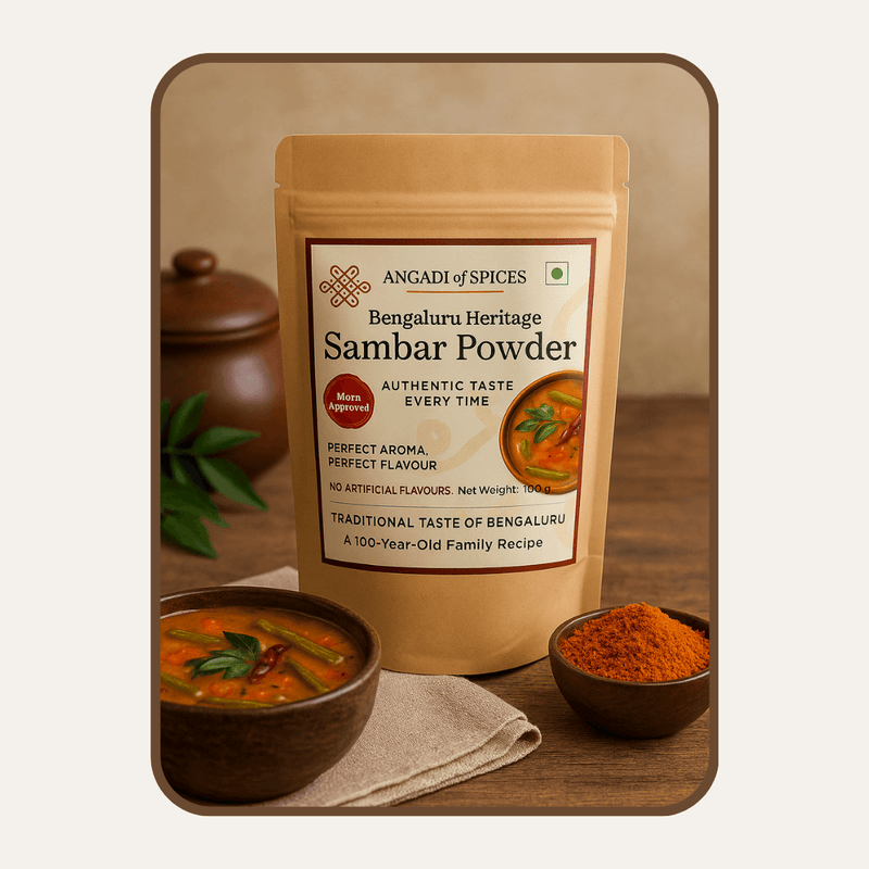 Our Bengaluru Heritage Sambar Powder is made from a 100-year-old family recipe, freshly ground using premium spices, and crafted to deliver authentic flavour every single time.
